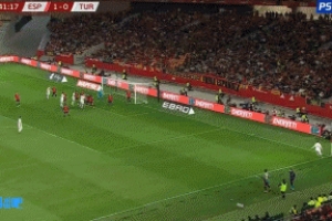 比赛第42分钟,土耳其队角球进攻,居尔破门为土耳其队扳平比分,1-1西班牙!