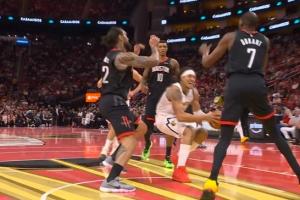 吓人呀!邓恩空切单臂要隔扣被戈贝尔犯规 平拍在地好在无碍