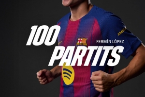 此役是费尔明的诺坎普首秀,也是他为巴萨出战的第100场比赛,巴萨官方社媒晒出海报,祝贺他达成巴萨百场里程碑。